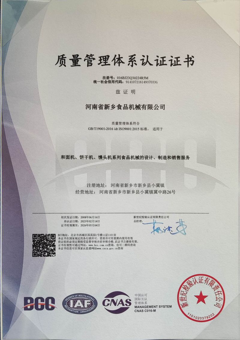 公司堅(jiān)持以高品質(zhì)、優(yōu)良的服務(wù)為宗旨,以用戶的需求和誠信為核心,為此贏得了廣大客戶的信賴和贊賞,市場占有率大幅度提高。1997年以來連續(xù)被河南省工商銀行評為AAA 級(jí)信用企業(yè),新鄉(xiāng)市技術(shù)監(jiān)督局授于計(jì)量信得過單位,公司產(chǎn)品連續(xù)經(jīng)國家飲食服務(wù)機(jī)械檢測檢驗(yàn)中心、河南省質(zhì)監(jiān)局、新鄉(xiāng)市質(zhì)檢抽檢檢驗(yàn)合格。2003年5月順利通過1SO9001國際質(zhì)量體系認(rèn)證。